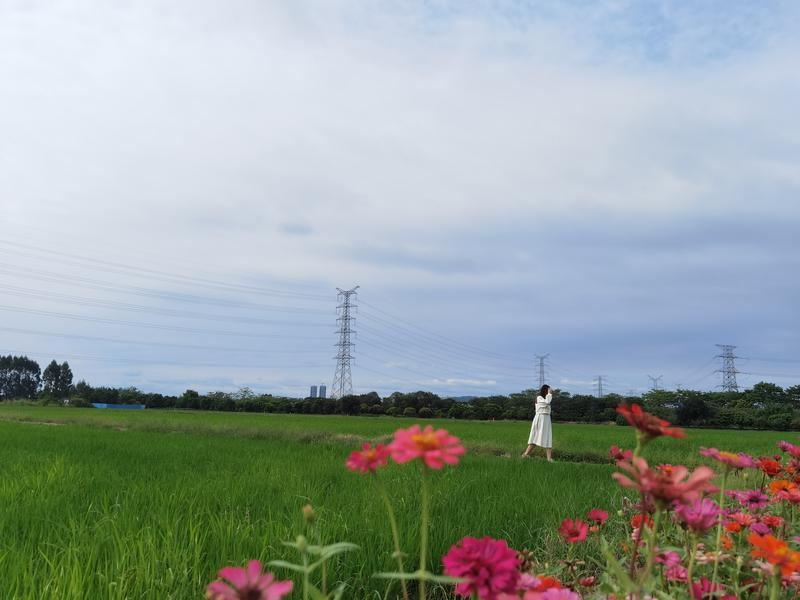 在機(jī)耕路兩旁,各色花兒綻放,迎風(fēng)搖曳,不時(shí)還有蜜蜂和蝴蝶在花兒周圍追逐,為這幅美麗的自然畫卷增添了絲絲靈氣。