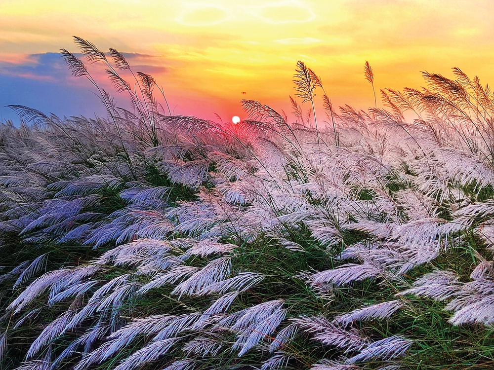 深秋時(shí)節(jié),惠州市惠城區(qū)汝湖鎮(zhèn)東江邊繽紛島的蘆葦花競(jìng)相盛開,滿目是景,吸引一撥撥游客前往觀光游玩。蘆葦花就像深秋的一場(chǎng)“雪”,唯美而浪漫。霞光中,浮動(dòng)的蘆葦如夢(mèng)如幻,纖細(xì)的身姿展現(xiàn)了一種無(wú)法言喻的優(yōu)雅。