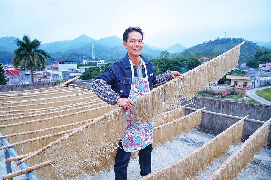 仲冬時(shí)節(jié),村民們忙著采收番薯,并將收回來的番薯制成薯粉絲。經(jīng)過沖洗、碾磨、揉粉、沉淀、蒸熟、切割、晾曬等10多道工序后,番薯被制成薯粉絲,成為家家戶戶春節(jié)年貨必備之品。