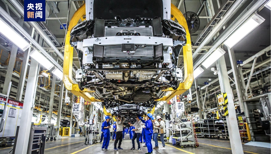 △全國每4輛新能源汽車就有1輛是“廣東造” 圖為廣汽埃安新能源汽車生產(chǎn)線