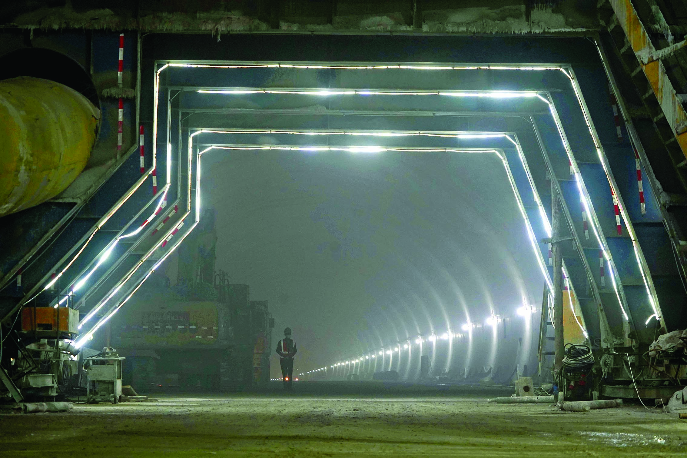 鷓鴣洞隧道內,配套施工加速進行。