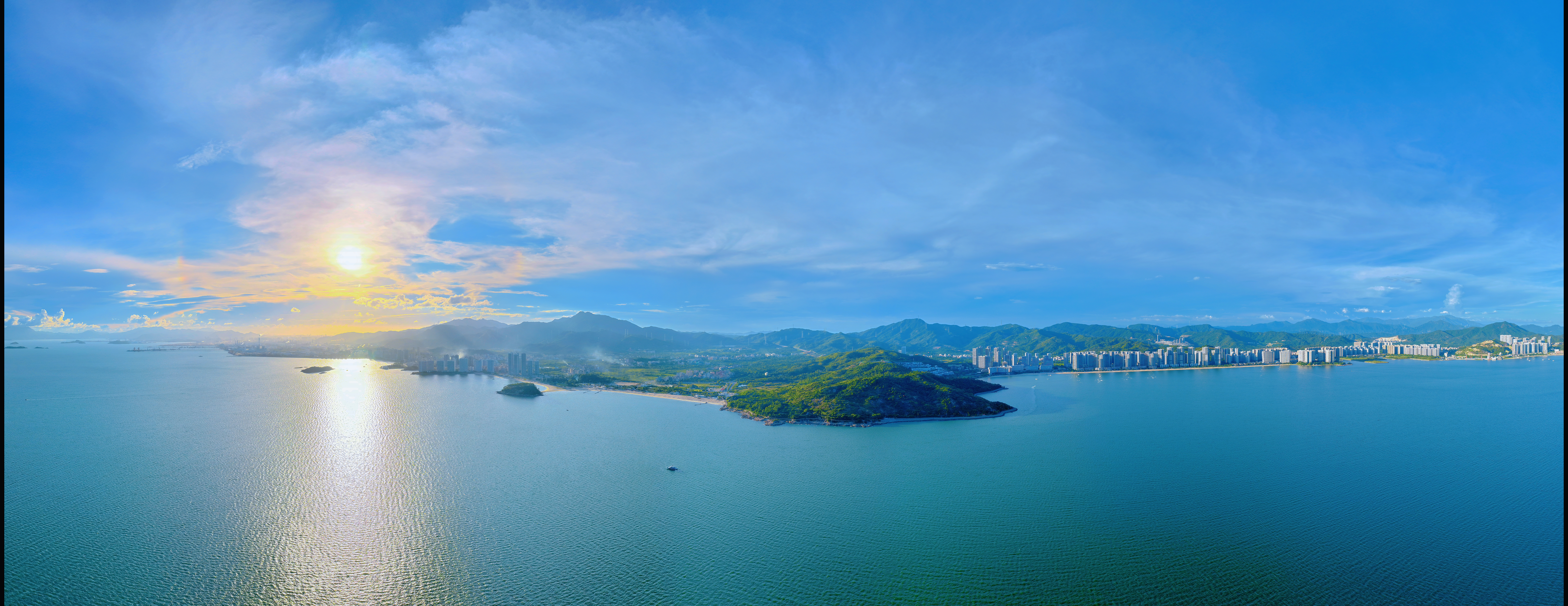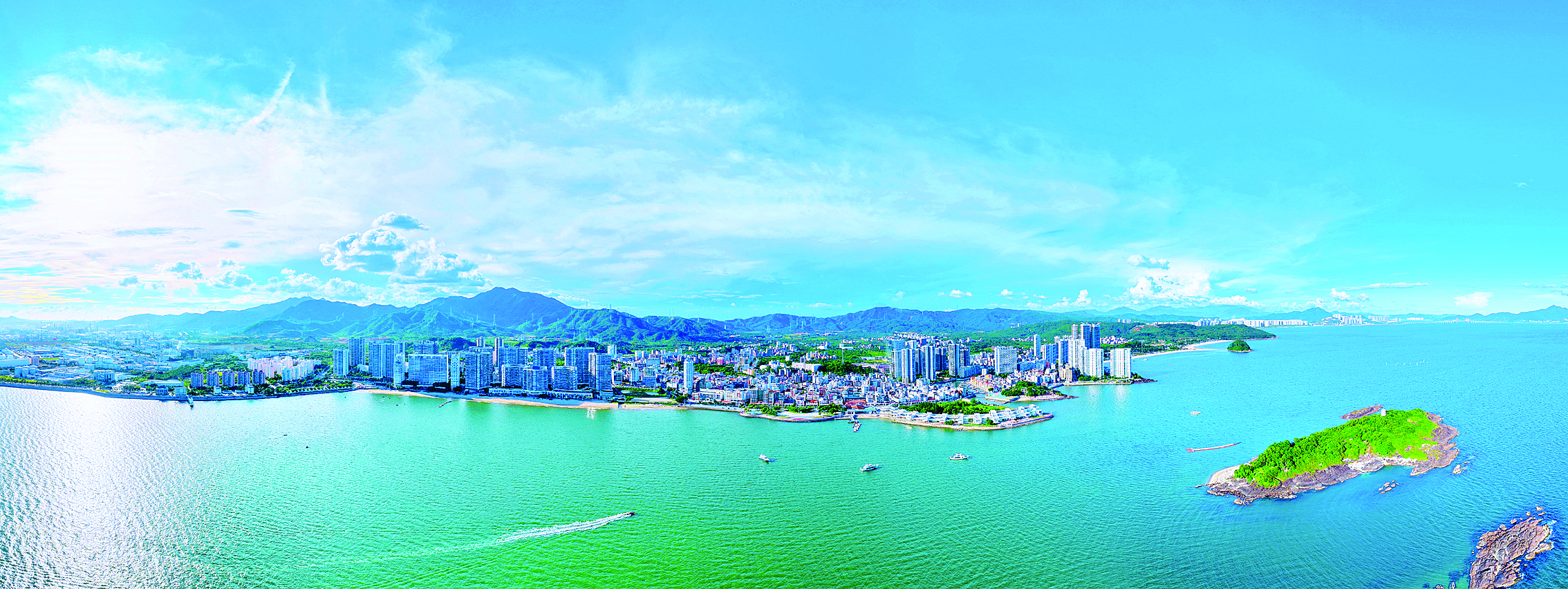 大亞灣霞涌悠長蜿蜒的海岸線上,海水似翡翠般澄澈透亮,波光粼粼,與澄澈藍(lán)天、悠悠白云遙相呼應(yīng);岸邊,高樓錯落分布,和遠(yuǎn)處青翠山巒相互映襯,勾勒出獨(dú)特的城市與自然交融之景。
