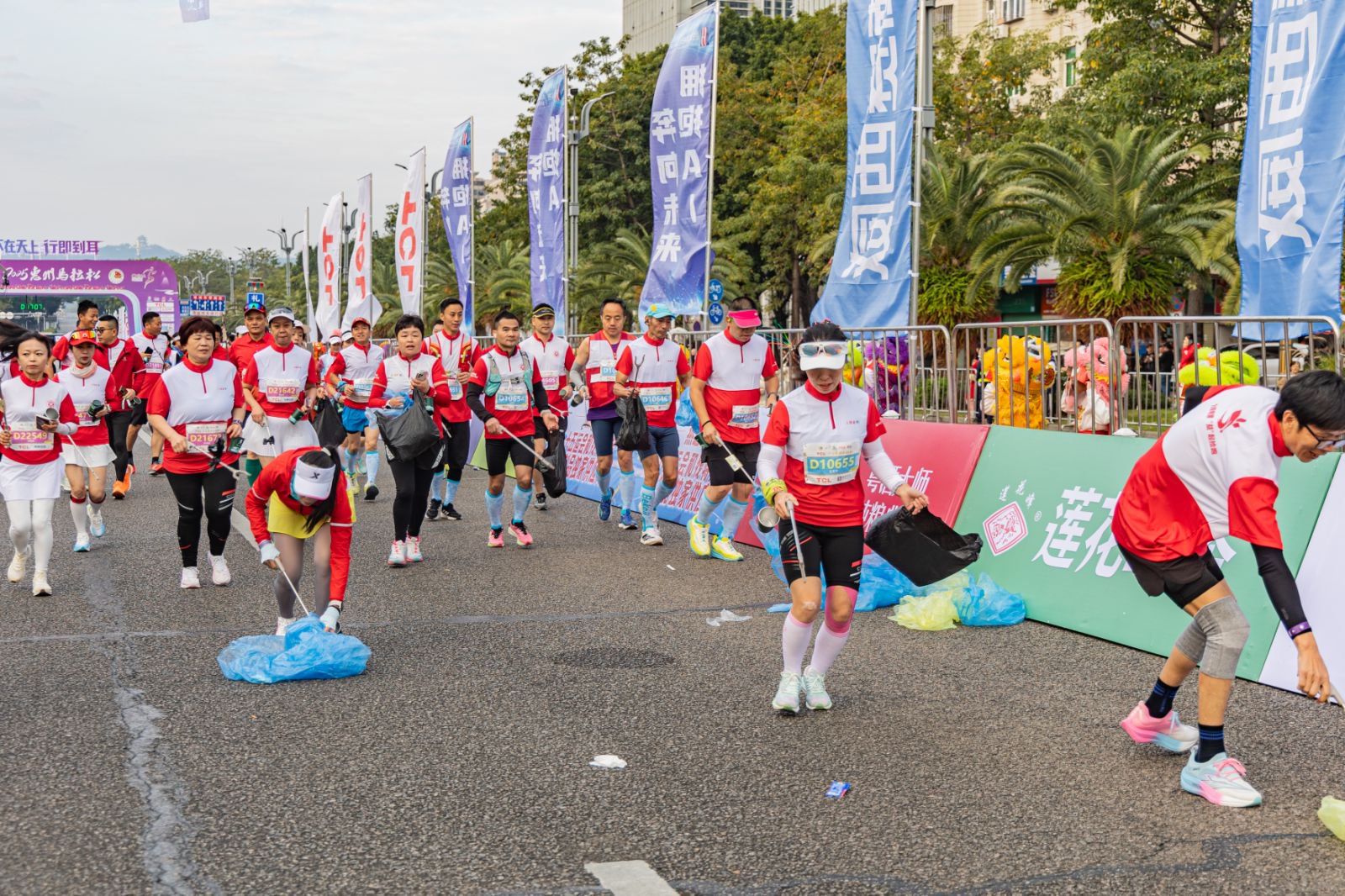 惠馬始終堅(jiān)持“綠色賽事”理念。本屆賽事,組委會攜手惠州市撿跑協(xié)會一起組織了60名撿跑志愿者,緊隨關(guān)門兔之后清理賽道,踐行“為愛彎腰”的環(huán)保承諾。