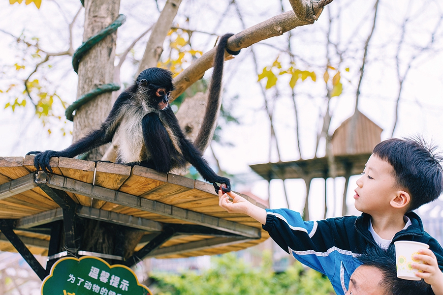 與傳統(tǒng)“花海”項目不同,不少游客來到浮生六季是為動物而來。記者在園內看到,諸如丹頂鶴、狐獴、火烈鳥、大嘴犀鳥、蜘蛛猴等多種珍稀甚至是來自異國的動物在此長期駐園展示。在觀賞之余,游客們還有大量機會與這些難得一見的野生動物進行零距離互動。據(jù)介紹,園區(qū)與國內某知名動物園團隊深度合作,引入多種野生動物開展觀賞互動、科普教育,豐富了生態(tài)園的業(yè)態(tài)。在動物養(yǎng)護、訓練以及相應景觀設施設置等,對方團隊給予了專業(yè)的支持,同時以門票分成的方式實現(xiàn)雙贏。