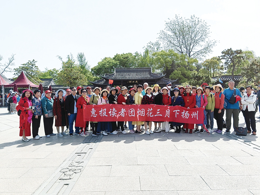4月12日,東籬俱樂(lè)部會(huì)員一行38人參加了惠報(bào)國(guó)旅組織的“惠報(bào)讀者團(tuán)煙花三月下?lián)P州”活動(dòng),團(tuán)友們從惠州北站坐高鐵出發(fā),直達(dá)揚(yáng)州站,體驗(yàn)家門(mén)口坐高鐵出游的便利。