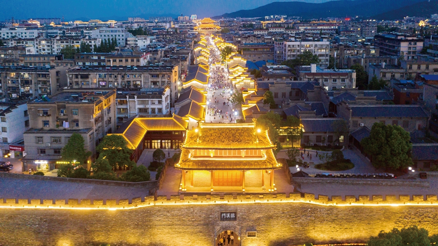 襄陽(yáng)古城夜景。