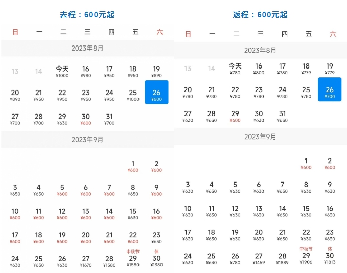 注:下述截圖時間基本在8月15日下午15:20前后,數(shù)據(jù)均來自攜程,因機(jī)票變動較快,大家購票請以實(shí)際為準(zhǔn)!