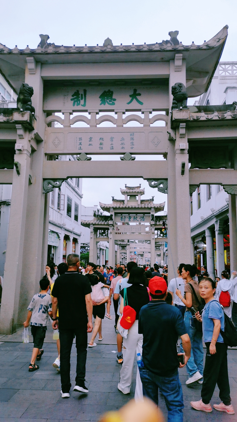 潮州古城位于寒江旁,沿著寒江邊前行,但見保存完好的古城墻至今仍將整個古城極好地保護(hù)于其中,沿江的幾座城樓是進(jìn)出古城的出入口,其中最巍峨壯觀的,是正對廣濟(jì)橋的廣濟(jì)樓。據(jù)記載,始建于明代的廣濟(jì)樓曾在清咸豐三年因失火而遭到毀壞,后得以重建。重建后的廣濟(jì)樓還原了曾經(jīng)古色古香的模樣。穿過廣濟(jì)門進(jìn)入古城,街上的建筑是典型的騎樓建筑,雖已經(jīng)過修繕,但老街上仍不時可以看到這些建筑最初的痕跡,或是一塊雕花墻磚,或是一塊老招牌,又或是不同于周邊的樓面,這里留下的,是潮州人下南洋的那段傳奇。再往里走,便可以看到古城里最為出名的石牌坊,“大總制”“少司馬”“四進(jìn)士坊”“節(jié)鎮(zhèn)三省”“太山北斗”“經(jīng)略邊務(wù)”“木天人瑞”……一座座石牌坊向來往游客講述著屬于這座古城的歷史故事和文化內(nèi)涵。再往里走,便越近居民的生活聚居點(diǎn),銀行、郵局、便利店……現(xiàn)代生活的痕跡越發(fā)清晰,潮州府、駙馬府、陳偉南文化館、古大士庵、孔廟等古今建筑散落于居民區(qū)內(nèi)卻不顯突兀。可以說,在這座古城里,完整保留下了明清至今的諸多歷史記憶點(diǎn)。