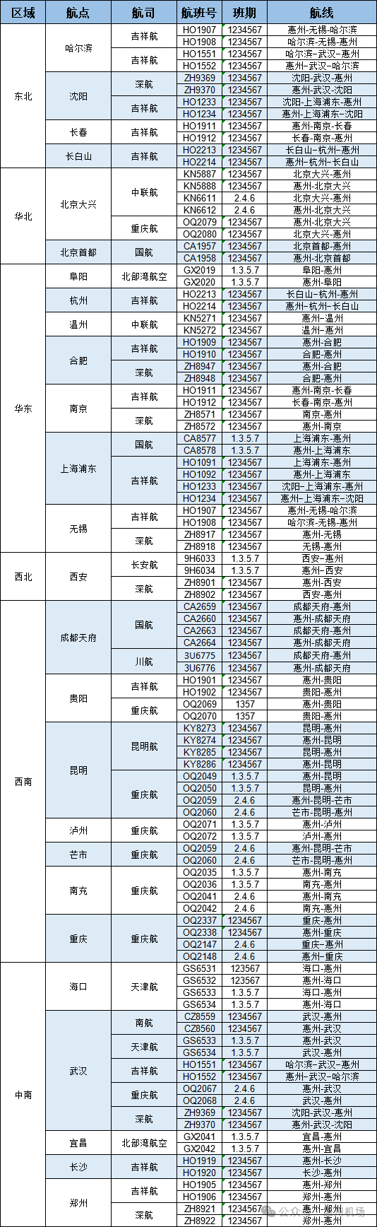 以上航線增加及恢復(fù)后,在春運期間惠州通往北京的航班每天達(dá)到3班(其中周二、四、六達(dá)到每天4班),武漢航線每天達(dá)到4班,成都航線每天達(dá)到3班,哈爾濱航線每天達(dá)到2班。
