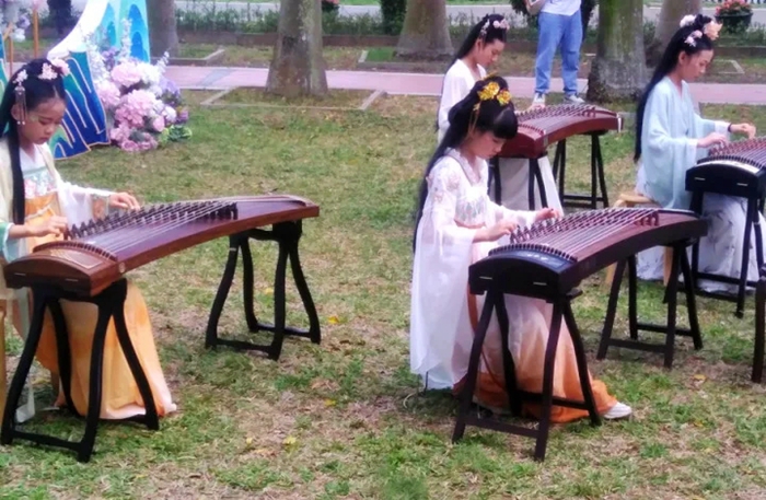 現(xiàn)場古箏彈奏表演。