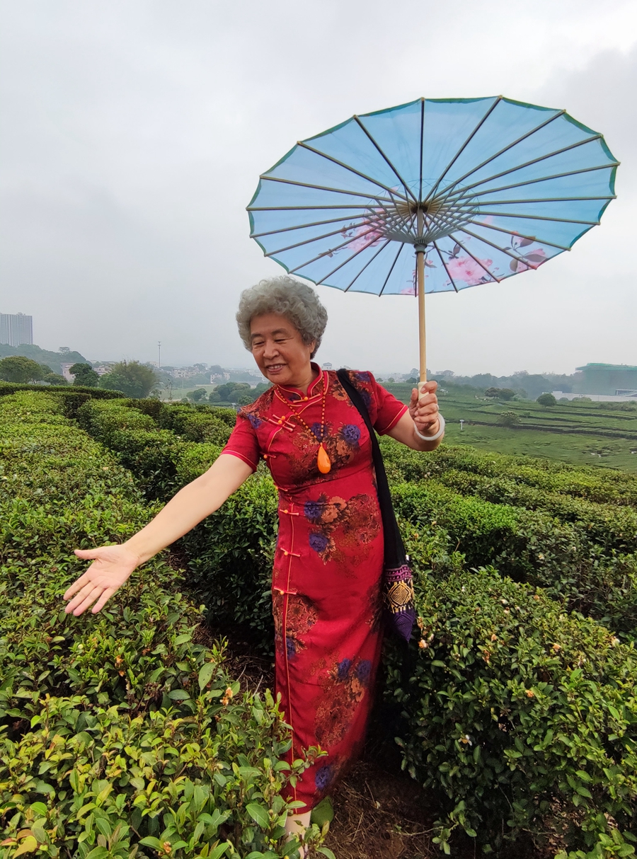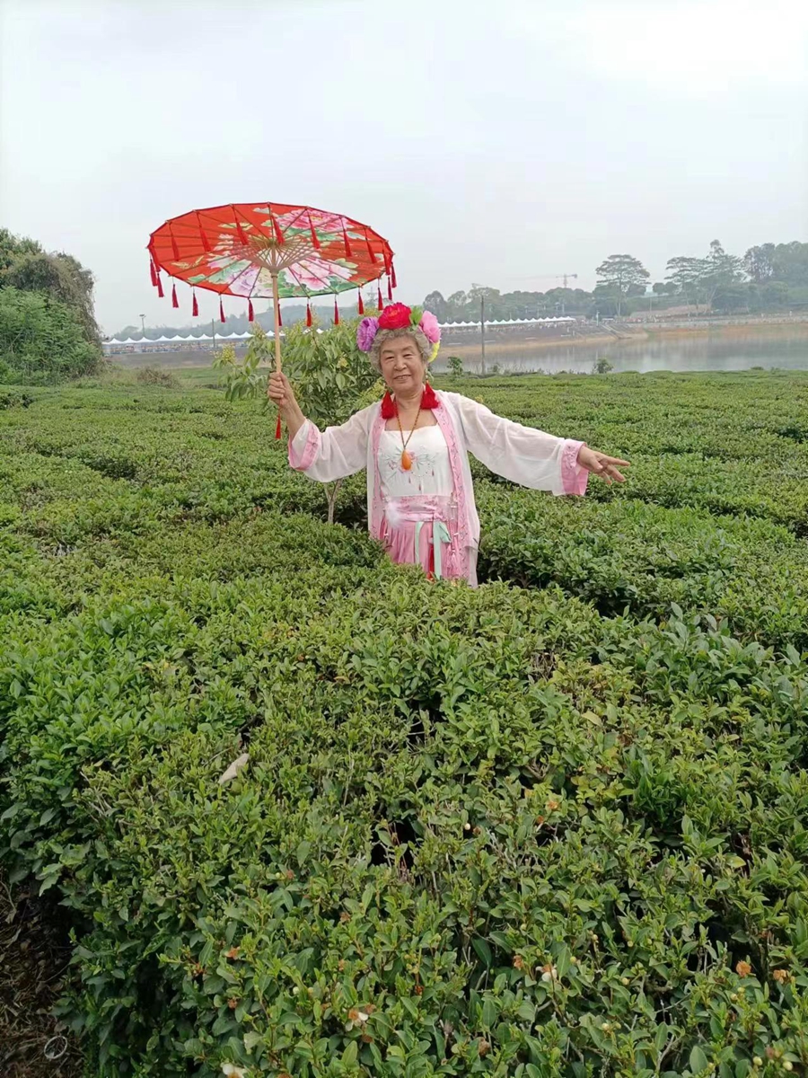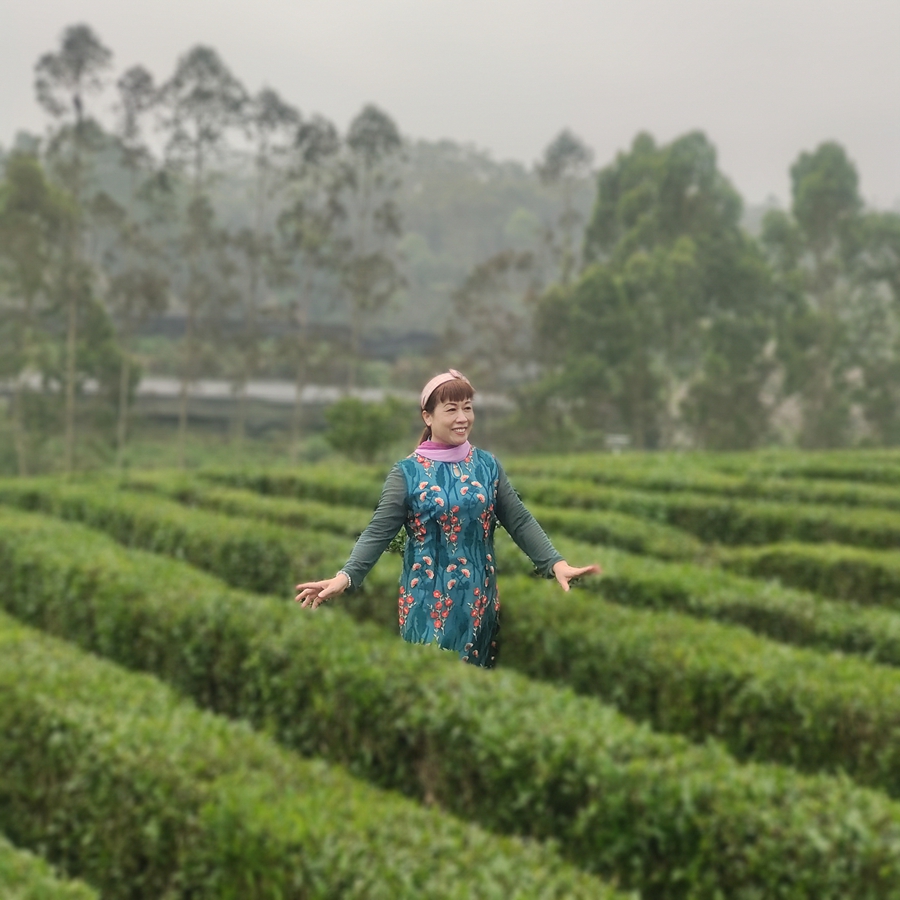 茶園里打卡。 鐘小紅 攝