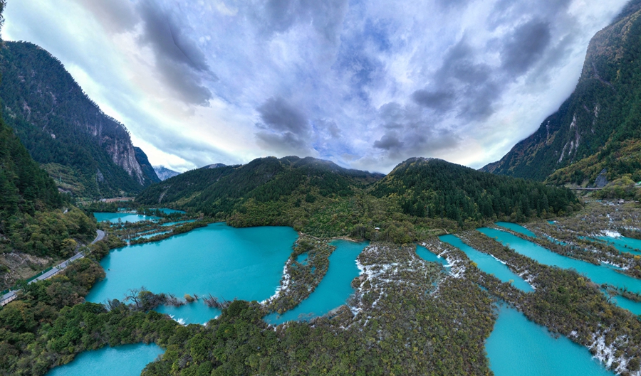 九寨溝主溝呈“Y”字形,總長50余公里。溝中分布有多處湖泊、瀑布群和鈣華灘流等。水是九寨溝景觀的主角,碧綠晶瑩的溪水好似項鏈般穿插于森林與淺灘之間,色彩斑斕的湖泊和氣勢宏偉的瀑布令人目不暇接。翠海、疊溪、彩林、雪峰、藏族風情……九寨溝以其自然天成的風光將攝人心魄的景致完美呈現(xiàn),不負“九寨歸來不看水”的美譽。
