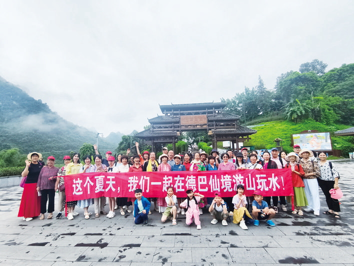 正巧,團里也有一“神奇之作”,80歲老媽媽統(tǒng)領一家四代“浩浩蕩蕩”出游德巴仙境。動車上與老媽媽聊天,老人家自豪告訴我們,說自己游歷大半中國,大好河山盡收眼底。團友紛紛點贊,“這次游山玩水正合心意。”她慈祥笑笑,時不時照看一下活潑可愛的曾孫女。倒是我沉默了,從未想過自己八旬年紀仍滿世界跑。