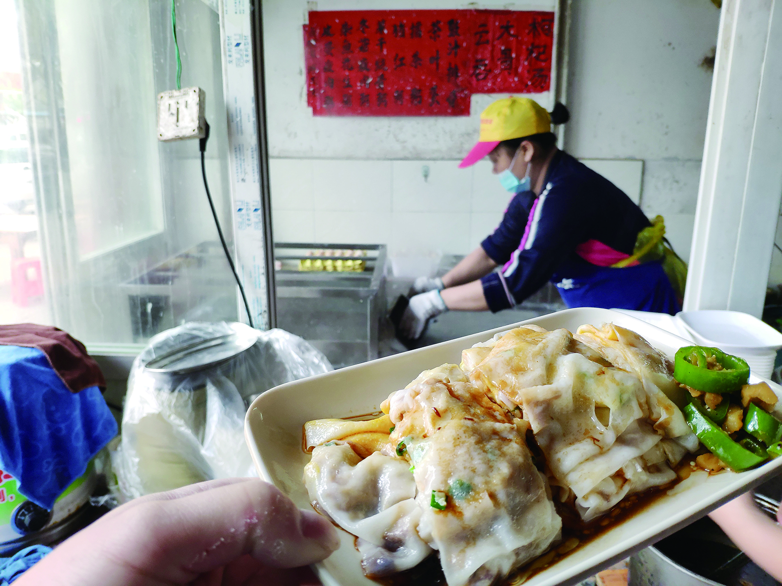 美景更有美食相伴,走進(jìn)當(dāng)?shù)氐男〕越郑惺軣崆榈纳特満拖銡馑囊绲拿朗常^對(duì)能讓你的味蕾得到極大的滿足。云浮號(hào)稱腸粉的發(fā)源地,以城區(qū)的河口腸粉最為正宗,吸引了眾多食客前來(lái)打卡體驗(yàn)。據(jù)介紹,河口腸粉采用傳統(tǒng)石磨制作米漿,選料配比皆有講究,做出來(lái)的腸粉薄、韌、軟、滑,加入豬肉或雞蛋、蝦、牛肉等餡料,蒸熟后淋上特制的醬汁,外觀晶瑩剔透,質(zhì)地細(xì)嫩,油香濃郁,咸淡得宜。