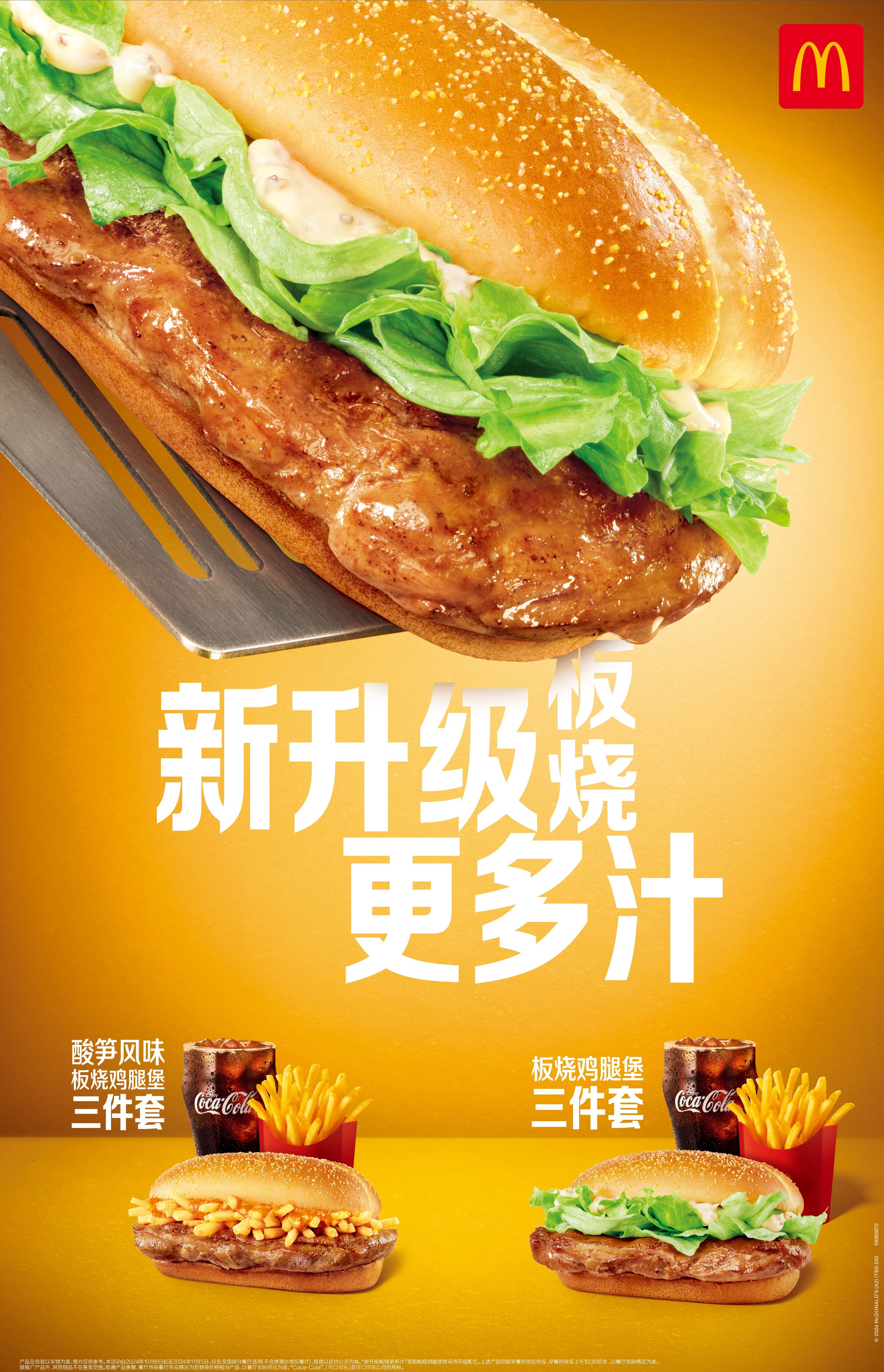 麥當勞中國正式推出新升級板燒雞腿堡,更飽滿、更多汁、更爽脆