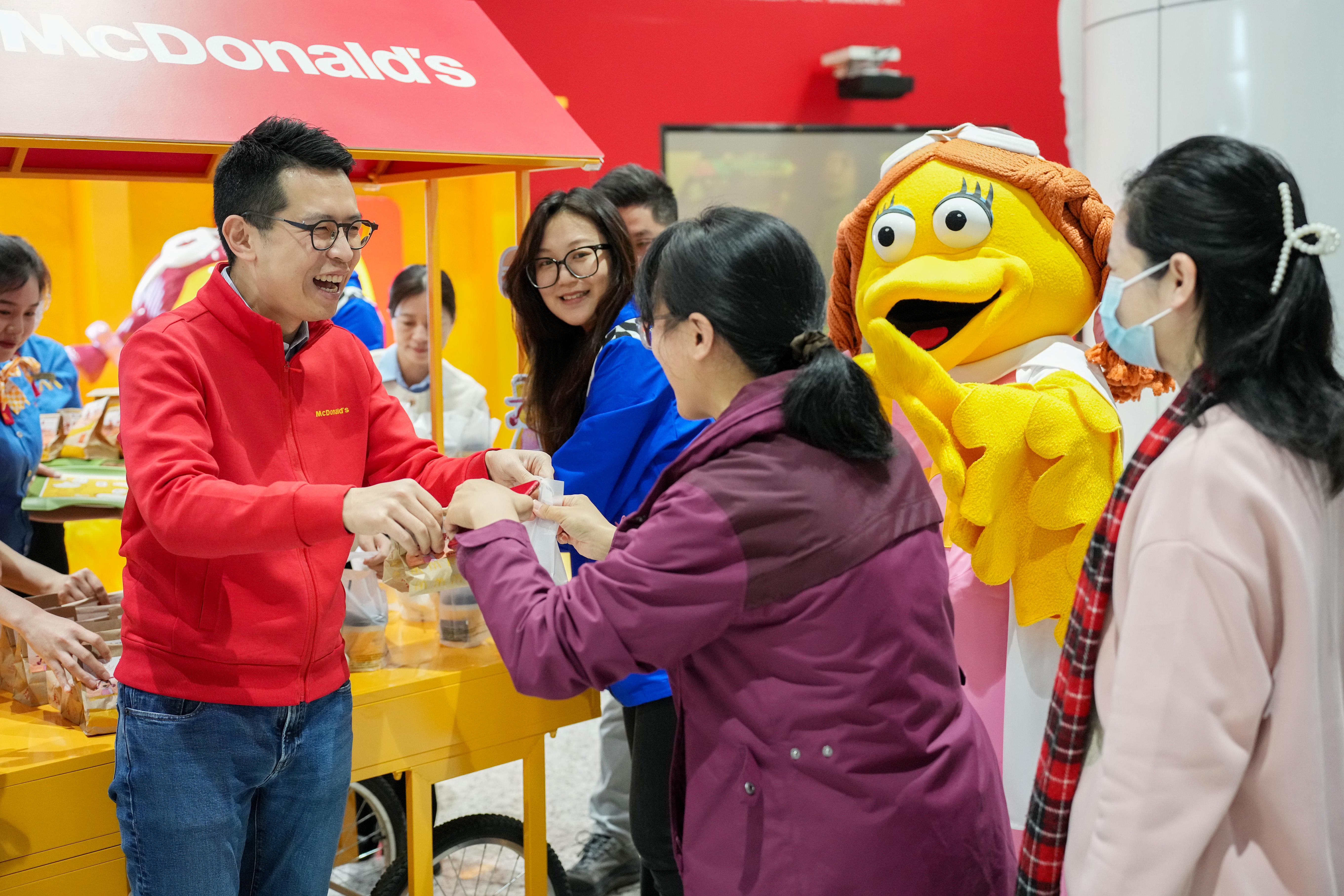 麥當(dāng)勞中國(guó)副總裁、深圳、東莞、惠州及粵西市場(chǎng)高級(jí)總經(jīng)理趙崇基先生為打工人派發(fā)愛(ài)心早餐