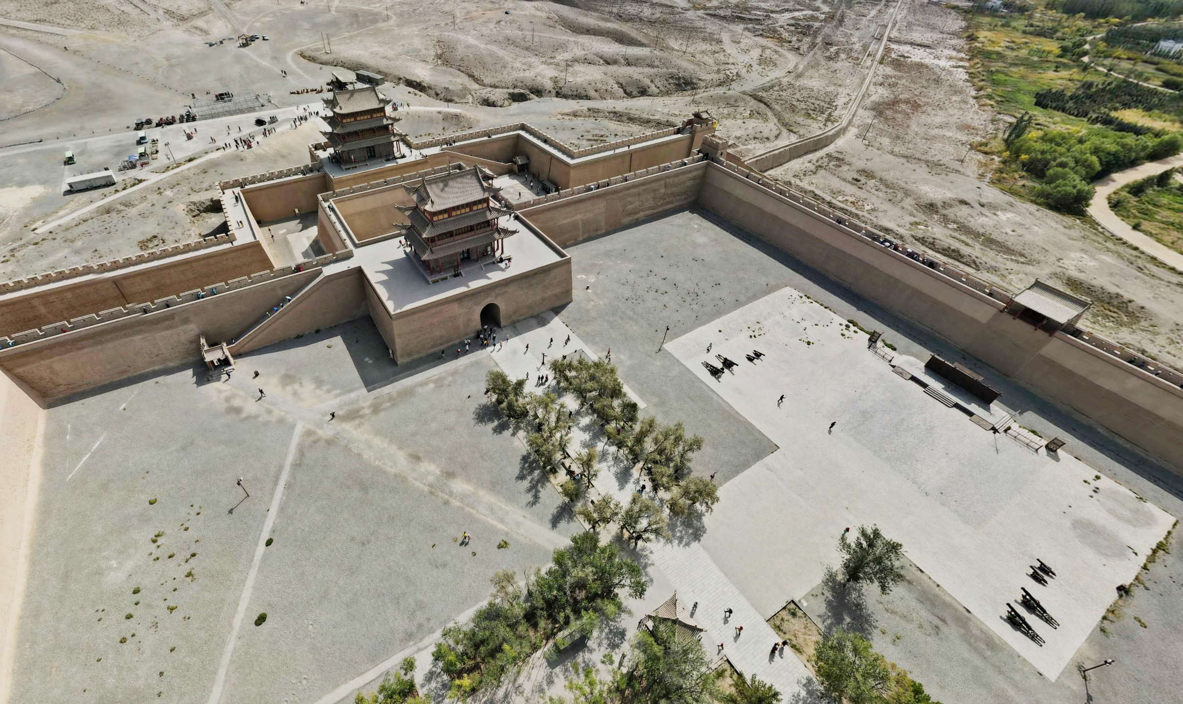 “天下第一雄關(guān)”巍然屹立于祁連山與黑山之間,登樓遠(yuǎn)眺,大漠蒼茫,頓生“邊陲鎖鑰、雄鎮(zhèn)西陲”的豪情。