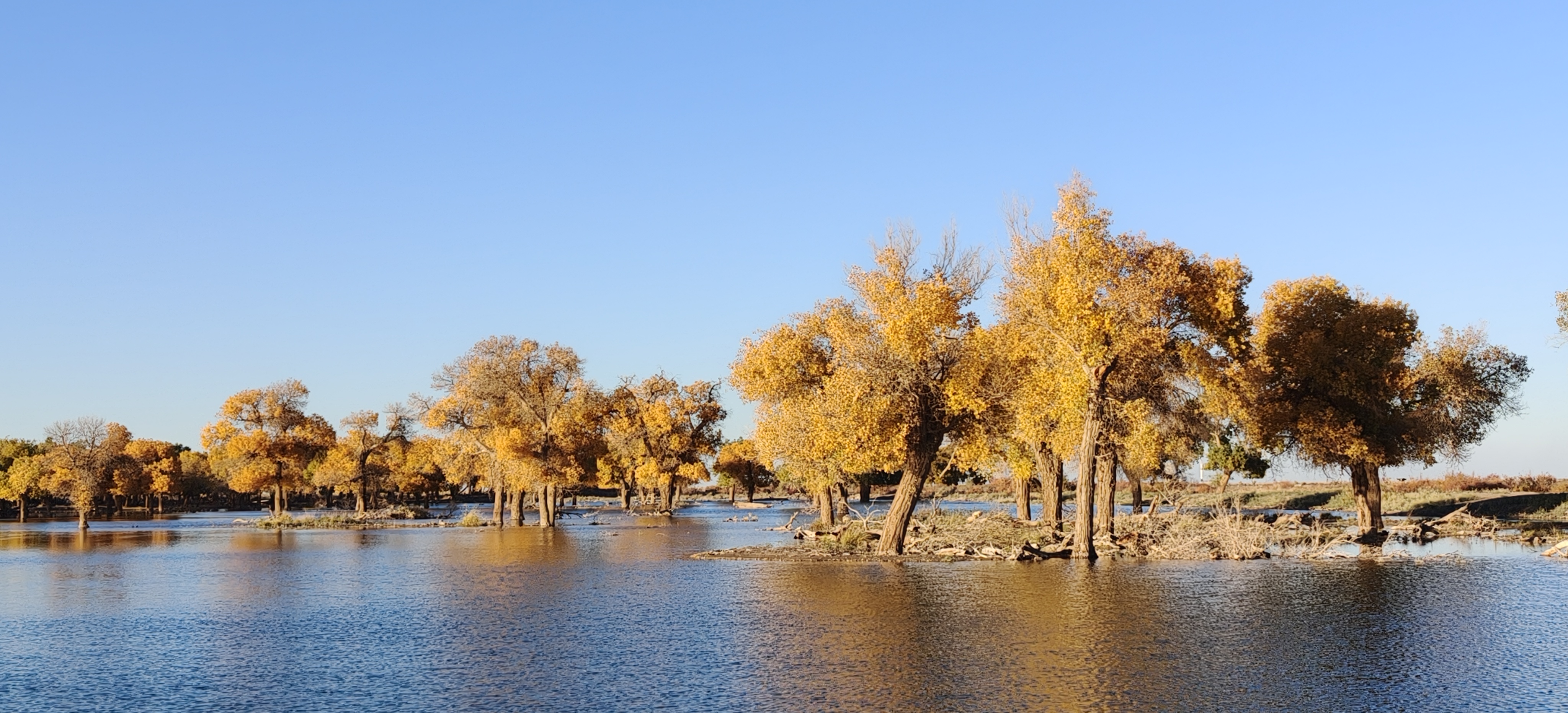 額濟(jì)納枝繁葉茂的水中胡楊林。