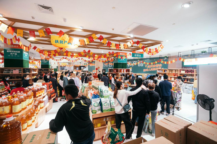 惠州名特優(yōu)新農(nóng)產(chǎn)品展銷中心位于惠州市區(qū)江北核心商業(yè)區(qū),由惠州市農(nóng)業(yè)農(nóng)村局、惠州市鄉(xiāng)村振興局主辦,惠州報(bào)業(yè)傳媒集團(tuán)承辦。展銷中心于2020年6月30日正式開業(yè),并與“惠品匯”消費(fèi)幫扶電商平臺(tái)緊密結(jié)合,對(duì)全市的扶貧名優(yōu)特新產(chǎn)品進(jìn)行線上+線下集中展銷,是展銷全市七個(gè)縣區(qū)名優(yōu)農(nóng)特產(chǎn)品最集中、最全面的平臺(tái),于2020年底被授予“廣東省消費(fèi)扶貧創(chuàng)業(yè)創(chuàng)新基地(惠州)稱號(hào)”。目前,展銷中心已上架銷售來自惠州、東西部協(xié)作幫扶農(nóng)特產(chǎn)品超過1800種,自開業(yè)以來農(nóng)特產(chǎn)品銷售額逾千萬元,為脫貧攻堅(jiān)、鄉(xiāng)村振興注入了強(qiáng)勁的內(nèi)生動(dòng)力。今年,展銷中心陸續(xù)加掛了“惠州手信旗艦店”、“惠州鄉(xiāng)村振興農(nóng)產(chǎn)品展銷中心”牌匾。同時(shí),展銷中心也于2021年6月新建了“黔西南州農(nóng)產(chǎn)品惠州直營(yíng)旗艦店”專區(qū),全面推進(jìn)惠州與貴州省黔西南州的協(xié)作,目前已上架銷售黔西南州近3百款特色名優(yōu)農(nóng)產(chǎn)品。擬通過黔西南專館的建設(shè),健全幫扶機(jī)制、完善幫扶舉措,為黔西南州鞏固拓展脫貧攻堅(jiān)成果、惠州全面推進(jìn)鄉(xiāng)村振興貢獻(xiàn)更大的力量。